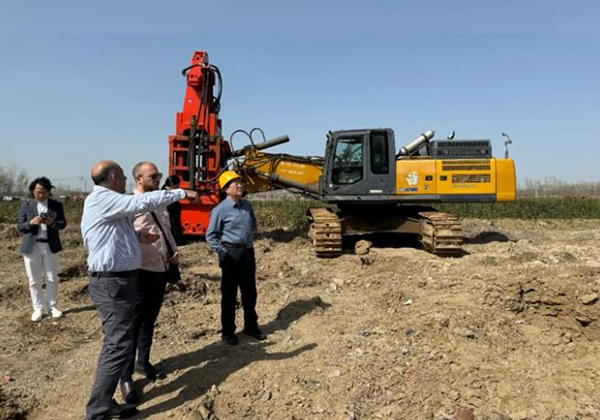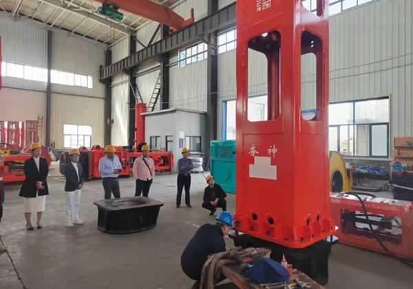 国外客户参观工厂并探讨液压夯HC150 HC180 并在场地观察实际夯实效果